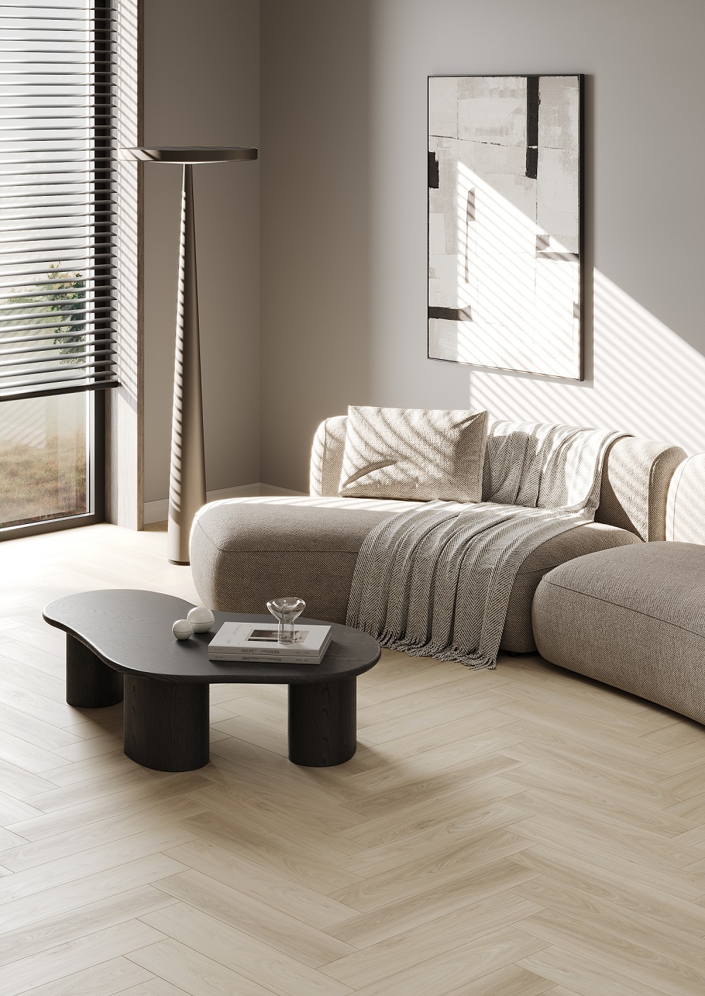Плашки размером 595×119 мм легко сплетаются в узор ёлочкой. Это отличный выбор для пространств, в которых важна архитектурная выразительность пола.