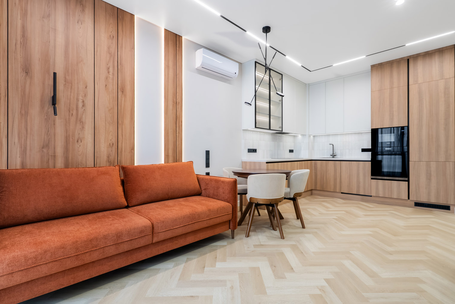 Заказали кварцевый ламинат Fargo Comfort Дуб Карамельный 366-2B градиент в магазине «Паркет 812». Плюсом оказалась возможность купить плинтус в цвет ламината, что мы и сделали. За два месяца эксплуатации, в которую входили окончание ремонтных работ, установка потолка, сборка и установка мебели, никаких изменений не наблюдается, пол ровный, при ходьбе не скрипит.
