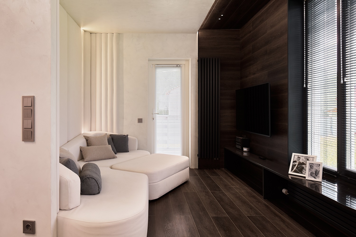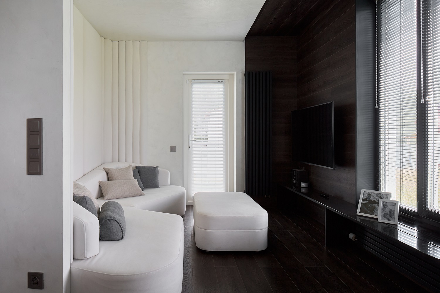 Дизайн-студия BALKA.Studio воссоздали на кухне героев выпуска атмосферу бизнес-класса самолета — получился эргономичный интерьер с обтекаемыми формами, высоким уровнем сервиса в зоне готовки и пространством для мягкой посадки в зоне отдыха.