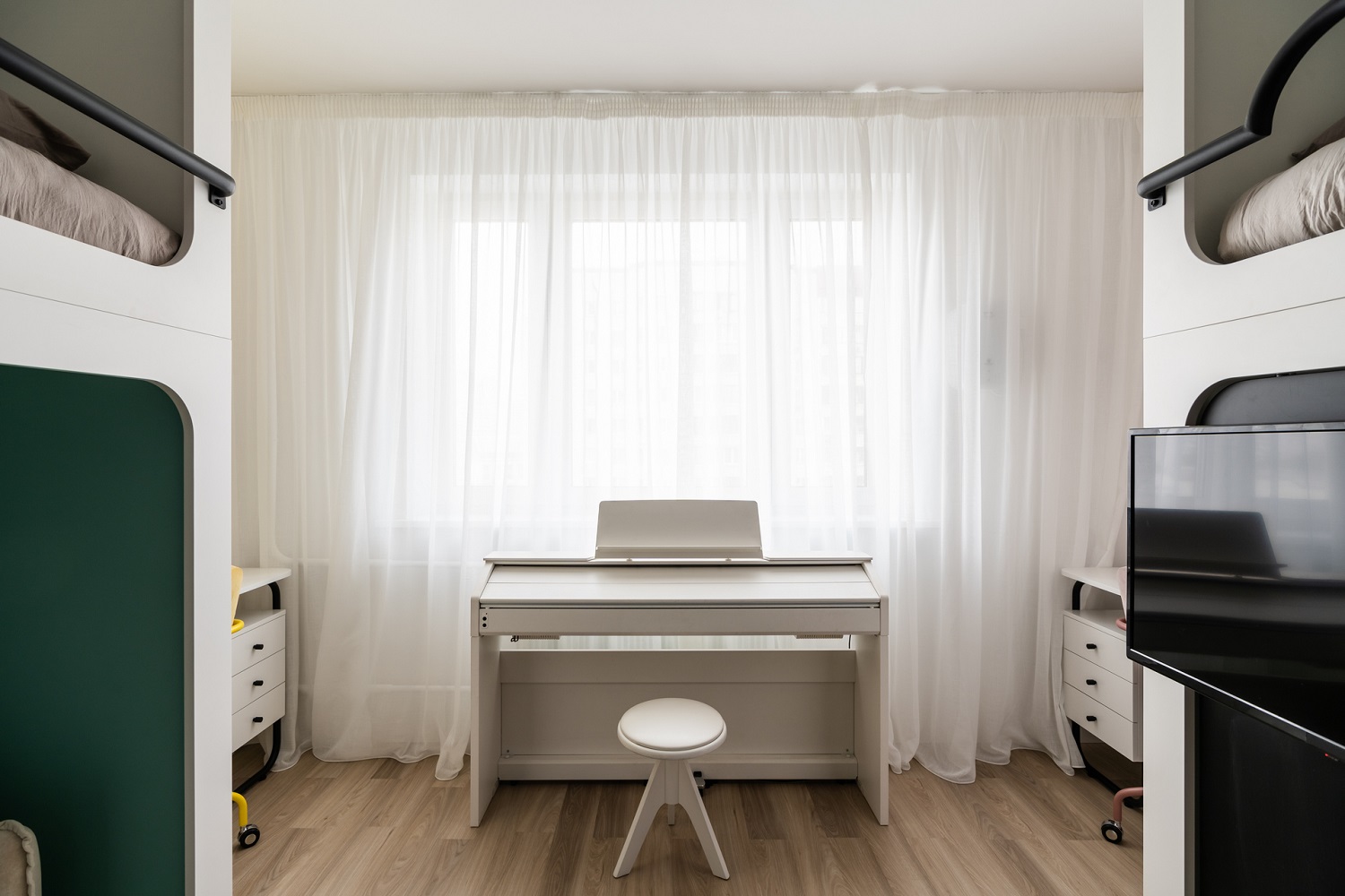 В детской применили интерьерную магию: разделили пространство на спальню, рабочую зону и гардеробную. Кстати, чулан, в котором жил Гарри Поттер, и знаменитые очки здесь тоже появились.